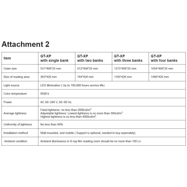 • Huge range of light adjustment function ( less than 300 and bigger than 4000 cd/m2), which fully meet the requirements for reading and diagnosis of different X-ray films.